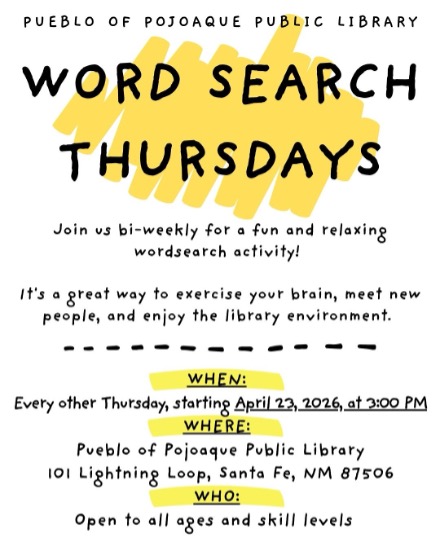The Pueblo of Pojoaque Public Library is dedicated to providing materials and services that support the recreational, educational, and professional needs of the community. With a special focus on assisting students and encouraging a love for reading and learning, the library aims to be a vital resource and engaging space for residents of all ages.